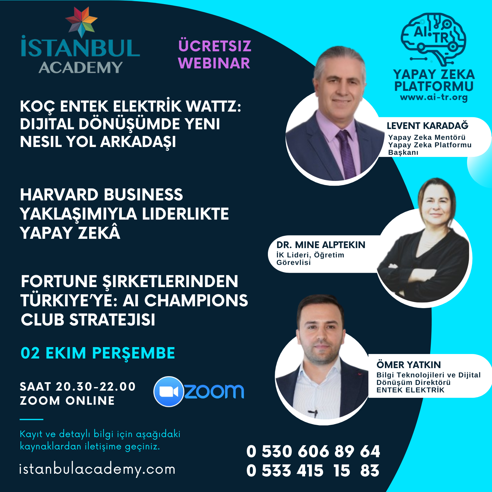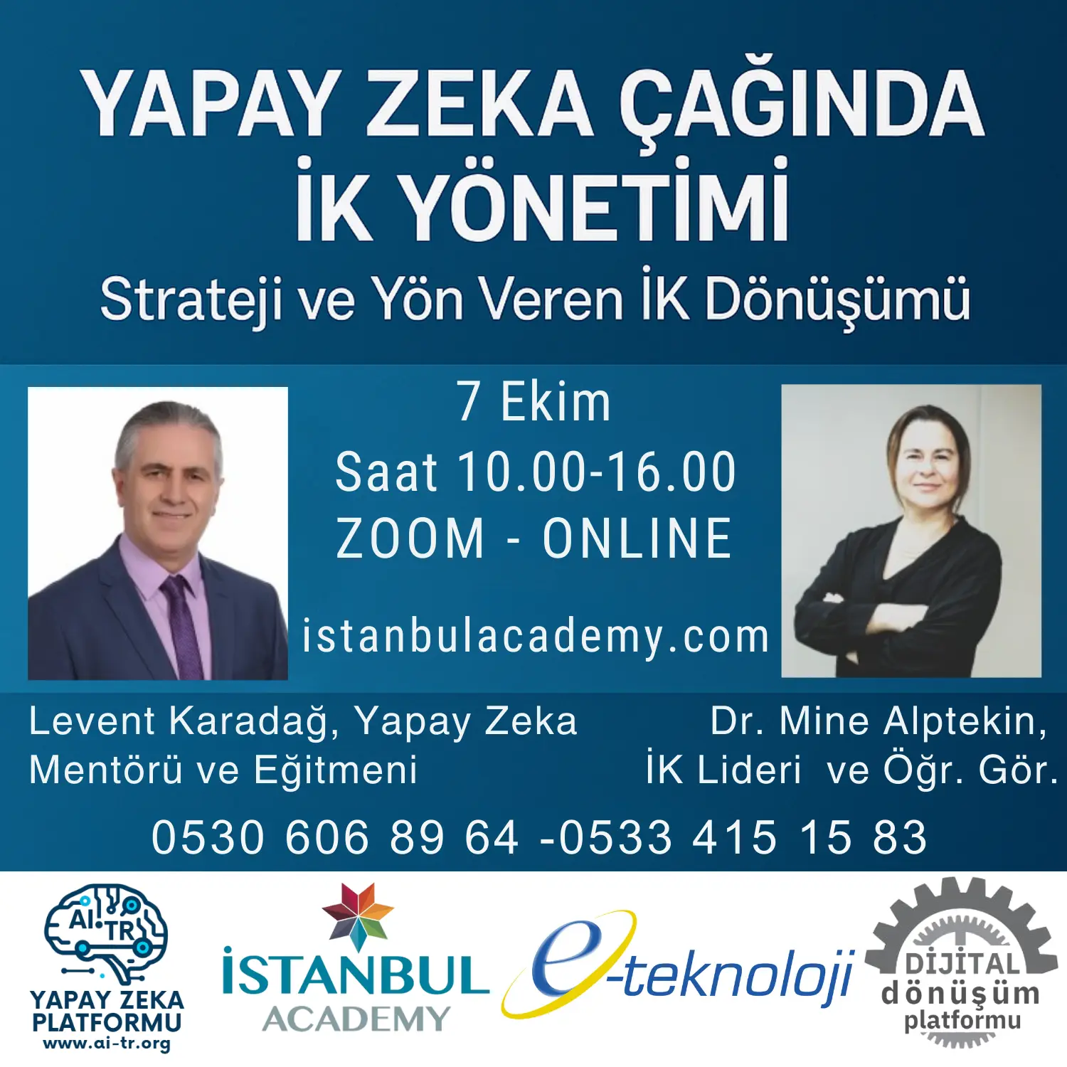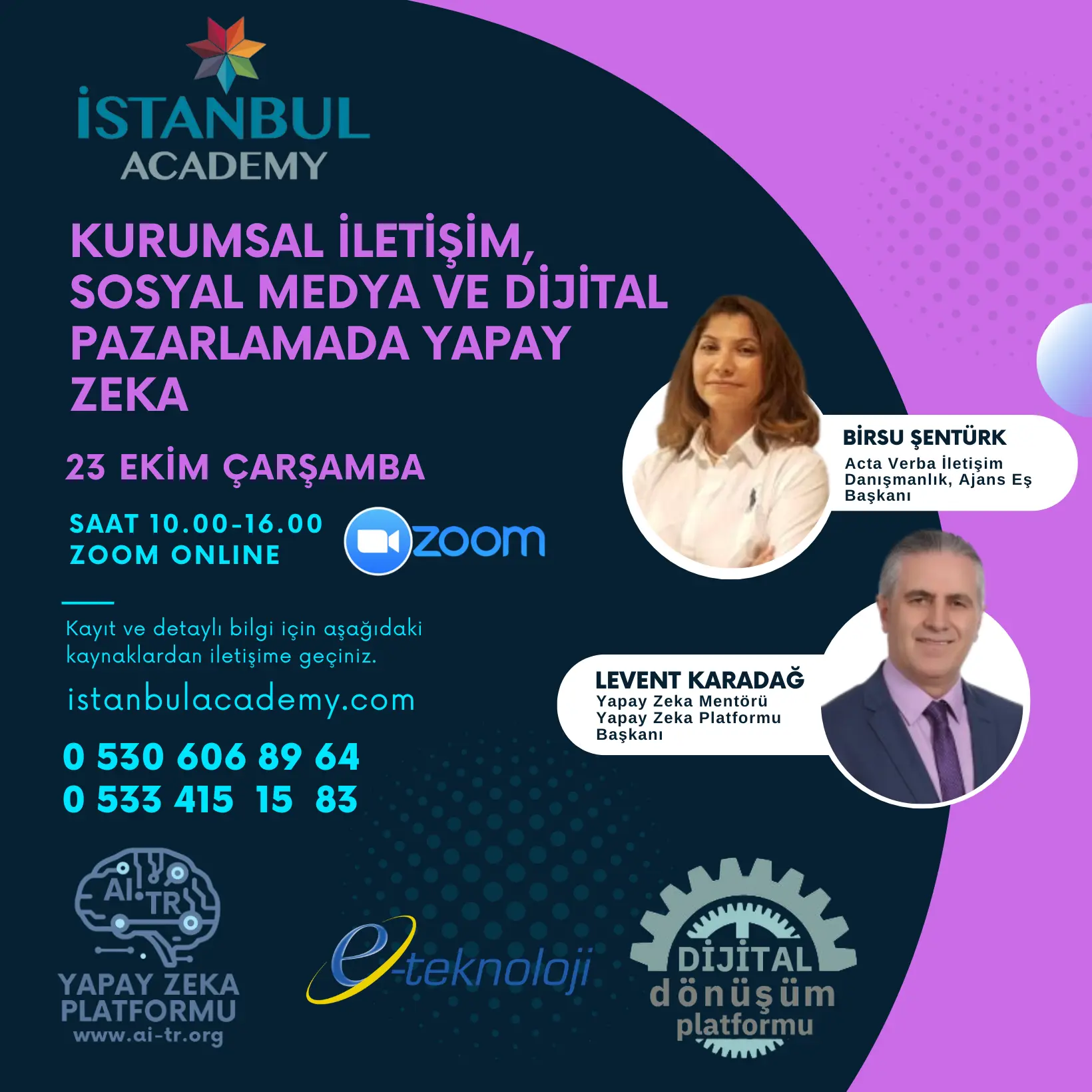 İstanbul Academy, iş dünyasının dijital dönüşüm yolculuğunda ihtiyaç duyduğu bilgi, beceri ve stratejiler sunar. Eğitim, konferans, danışmanlık ve sertifika programlarıyla siz de dönüşüme liderlik edin.