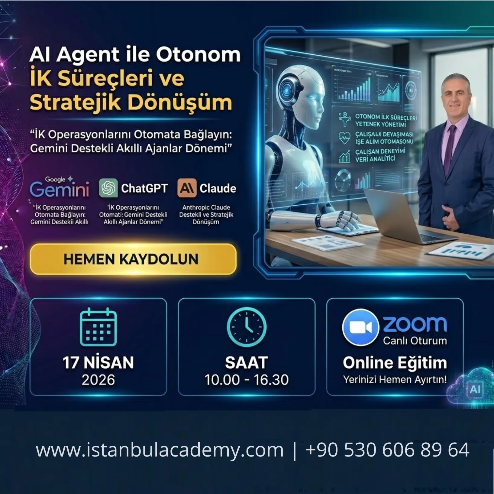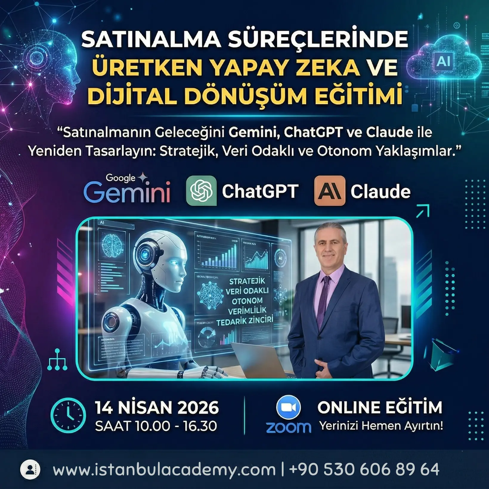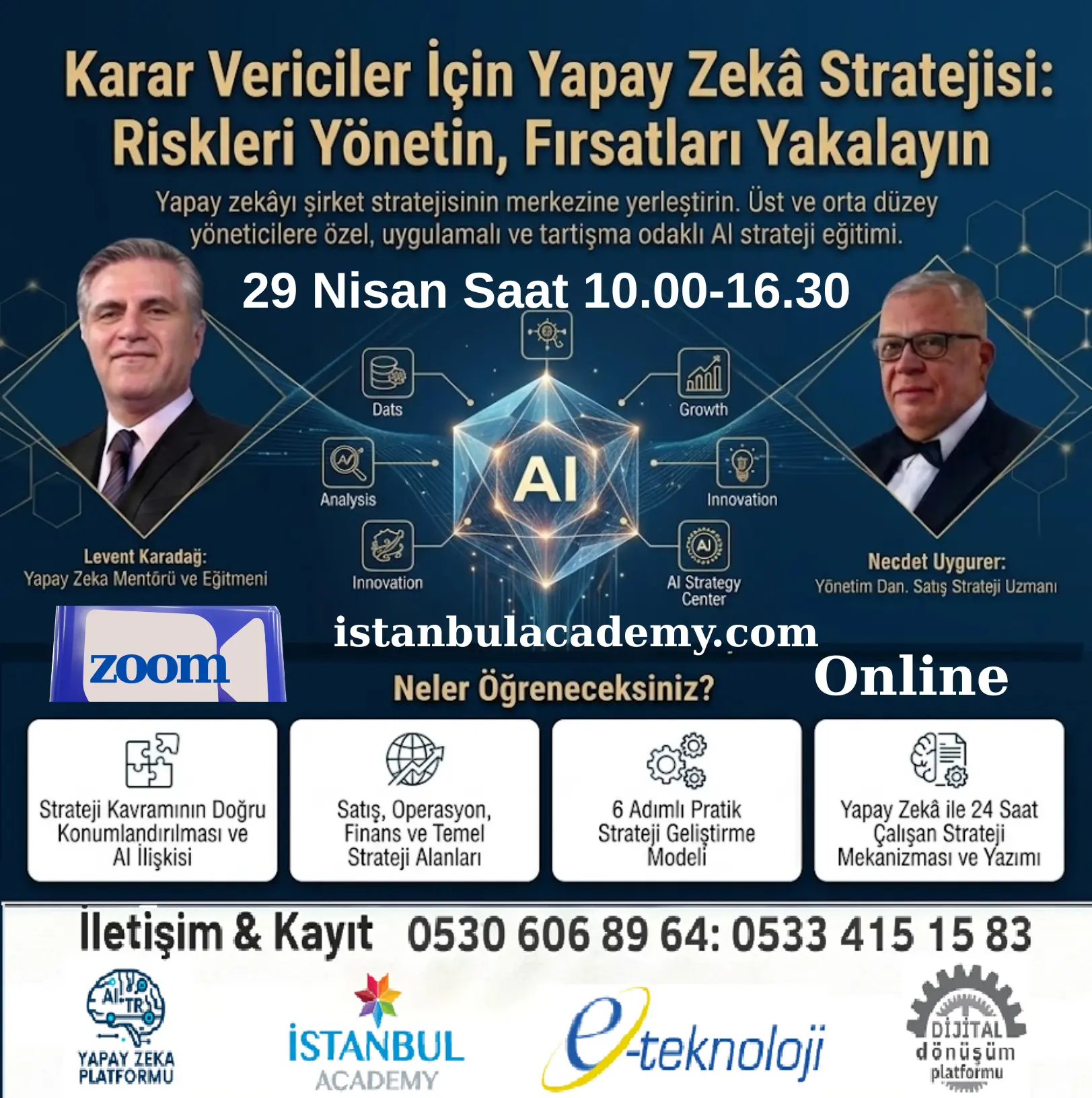 İstanbul Academy, iş dünyasının dijital dönüşüm yolculuğunda ihtiyaç duyduğu bilgi, beceri ve stratejiler sunar. Eğitim, konferans, danışmanlık ve sertifika programlarıyla siz de dönüşüme liderlik edin.
